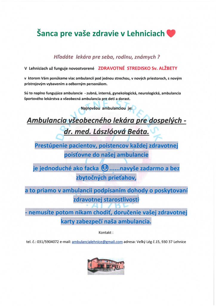 Zdravotné stredisko Sv. Alžbety v Lehniciach