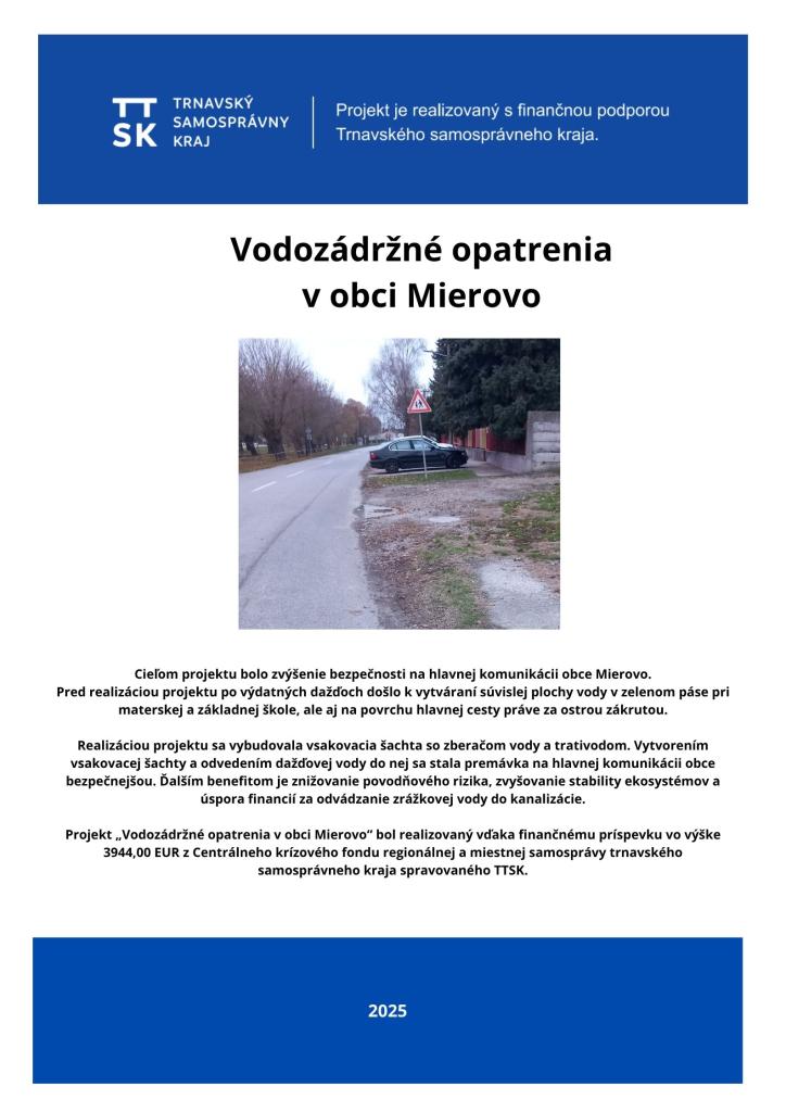Vodozádržné opatrenie v obci Mierovo
