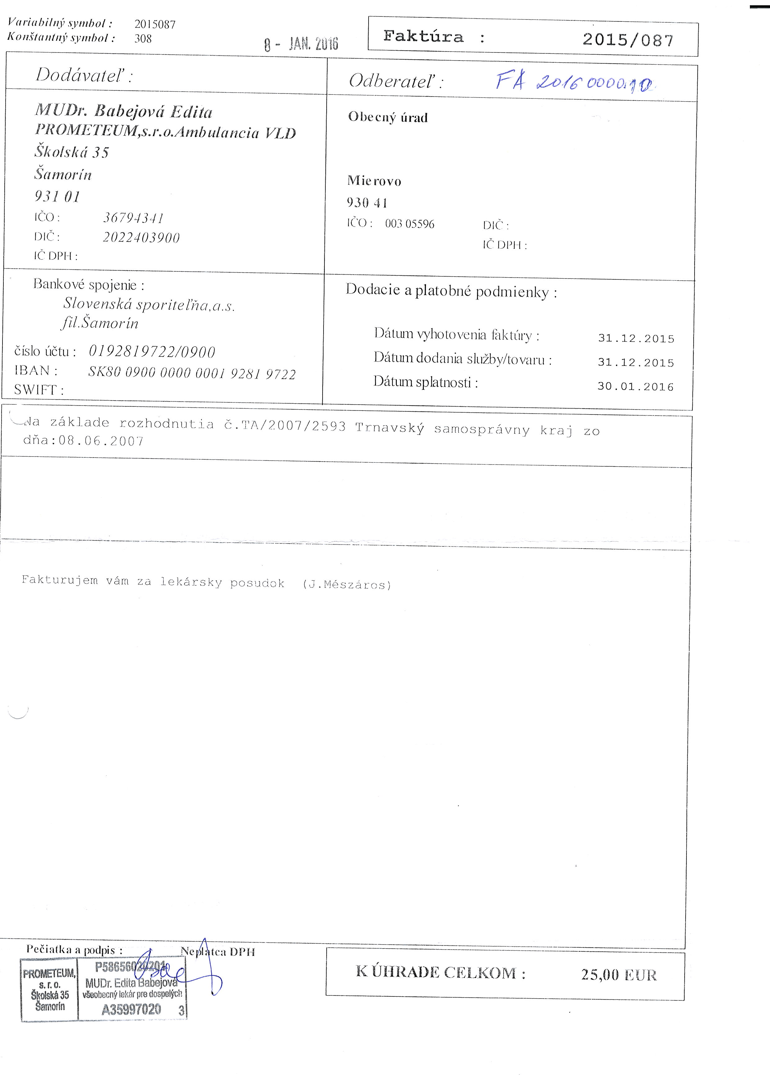 MUDr. Babejová - lek. posudok